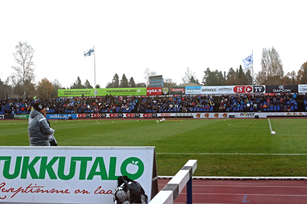 Vajaa puoli tuntia ennen SJK - FF Jaro -ottelun alkua Seinäjoen Keskuskentällä alkaa olla jo todella tiivis tunnelma.