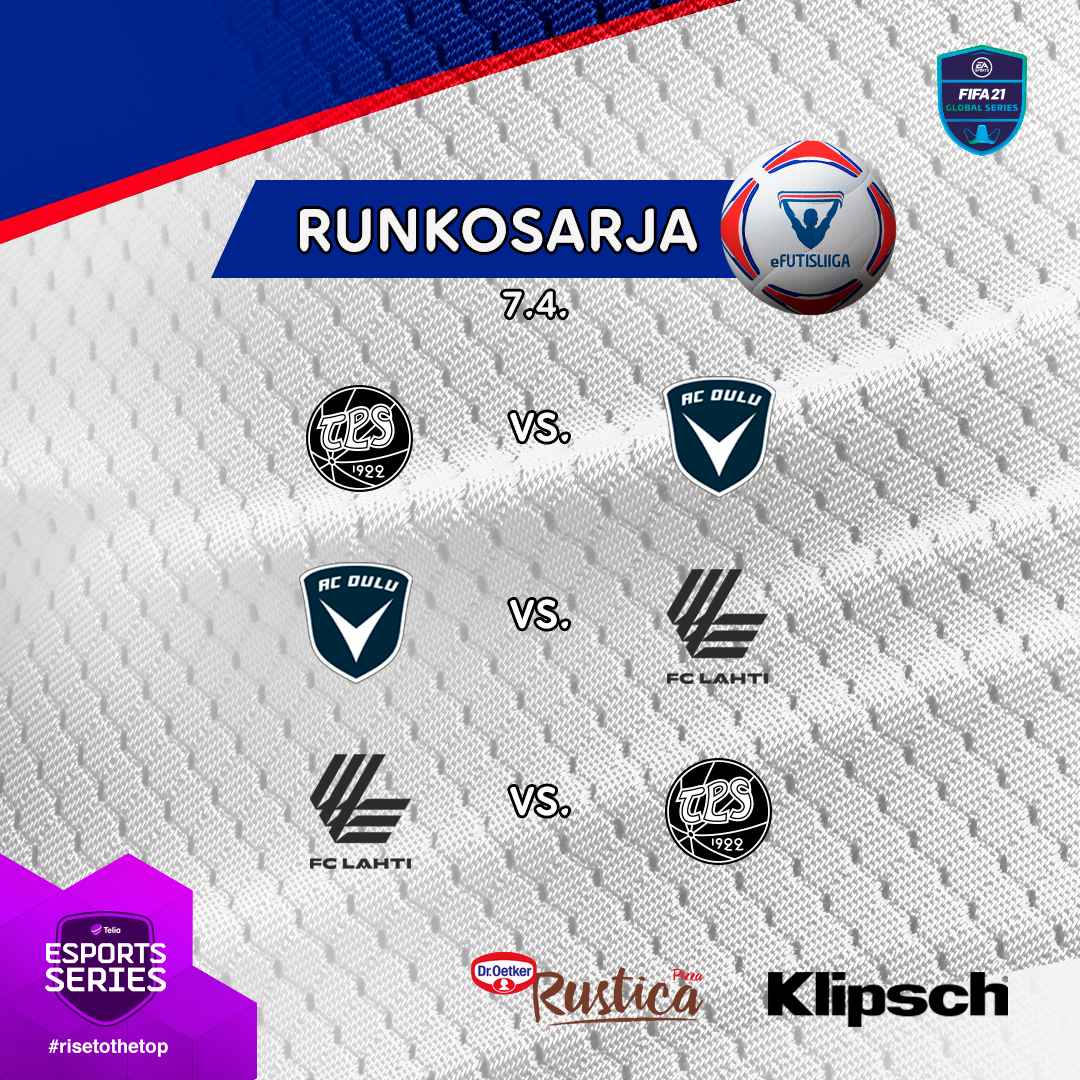 eFutisliigan kausi jatkuu keskiviikkona 7.4. studio-otteluilla, kun vieraaksi studiolle saapuvat TPS, AC Oulu ja FC Lahti.