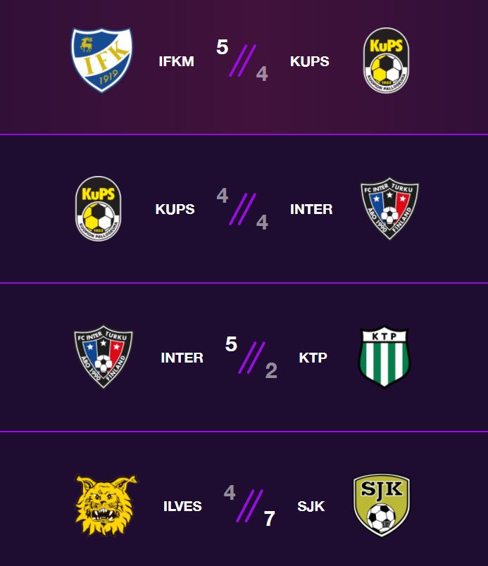 Tappiottomien joukkueitten kohtaamisessa SJK nousi voittoon Ilveksestä ja jatkaa puhtaalla pelillä lohkon kärjessä. Kaksikon lisäksi IFK Mariehamn jatkaa vahvoja otteitaan ja kaatoi KuPS:n niukasti. SJK, IFK Mariehamn ja Ilves ovatkin jo tekemässä pientä kaulaa muihin.