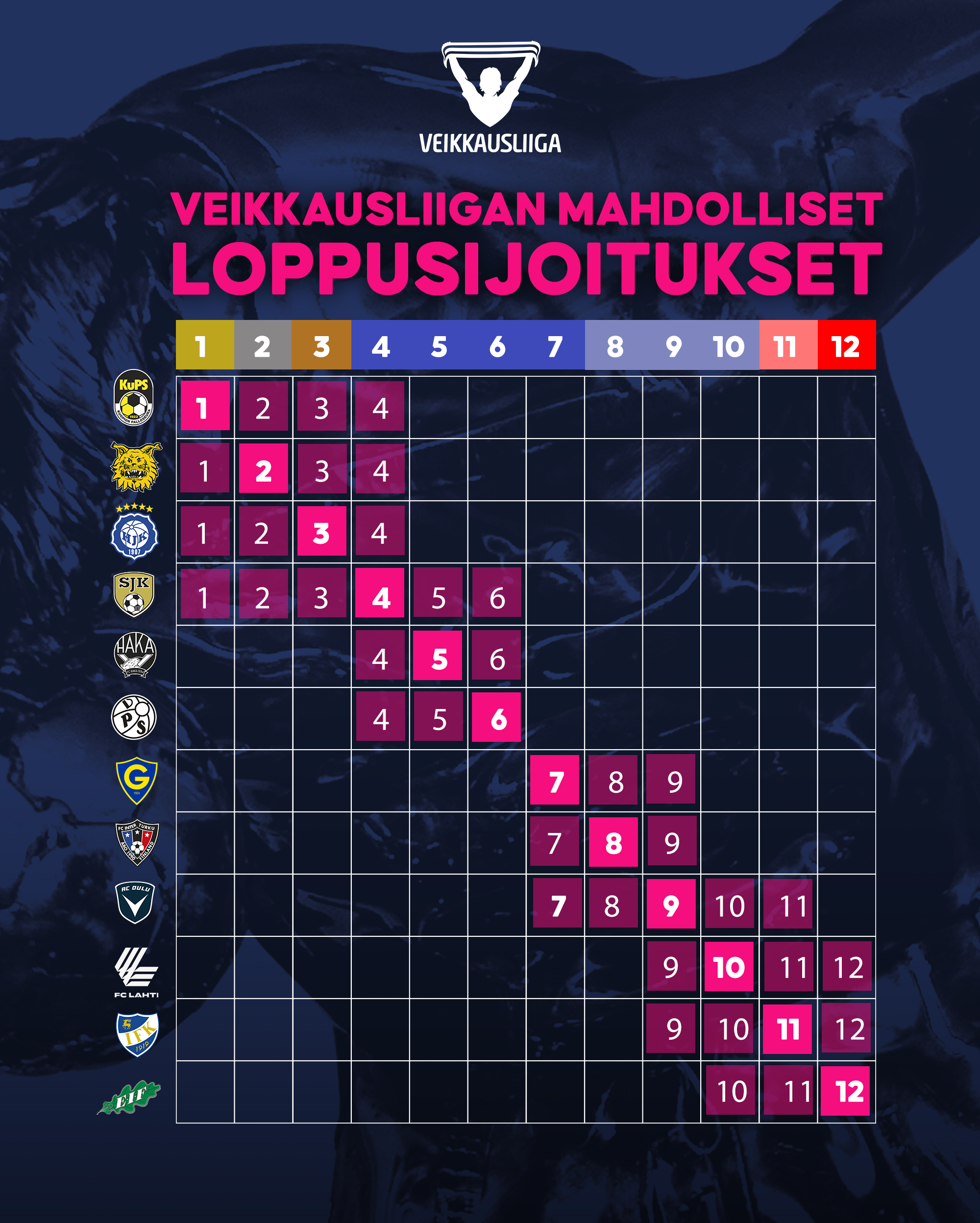 Asetelmat ennen viikonlopun kierrosta selviävät alla olevasta "mahdollisuuksien sarjataulukosta".