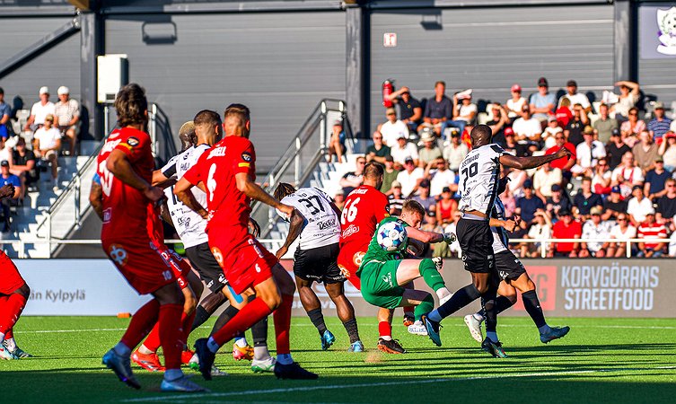 Jaron pallollinen pelaaminen oli avauspuoliajalla heikkoa ja punapaitojen pallolliset vaiheet jäivät lyhyeksi ja ajoittain kotijoukkue myös menetti palloja vaarallisilla alueilla. Jaro koki lisäksi uuden takaiskun miehistöönsä reilun puolen tunnin kohdalla, kun Luca Weckström loukkasi ikävän näköisesti nilkkaansa. Weckströmin tilalle tuli Emmanuel Mendy.